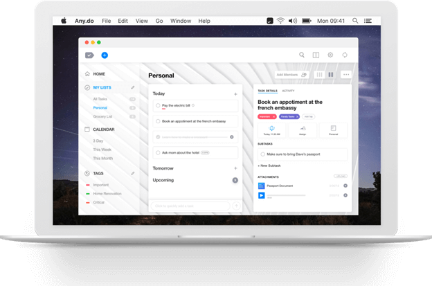 Focus on the events that really matter because of the Any.do app puts events in focus according to day and date.